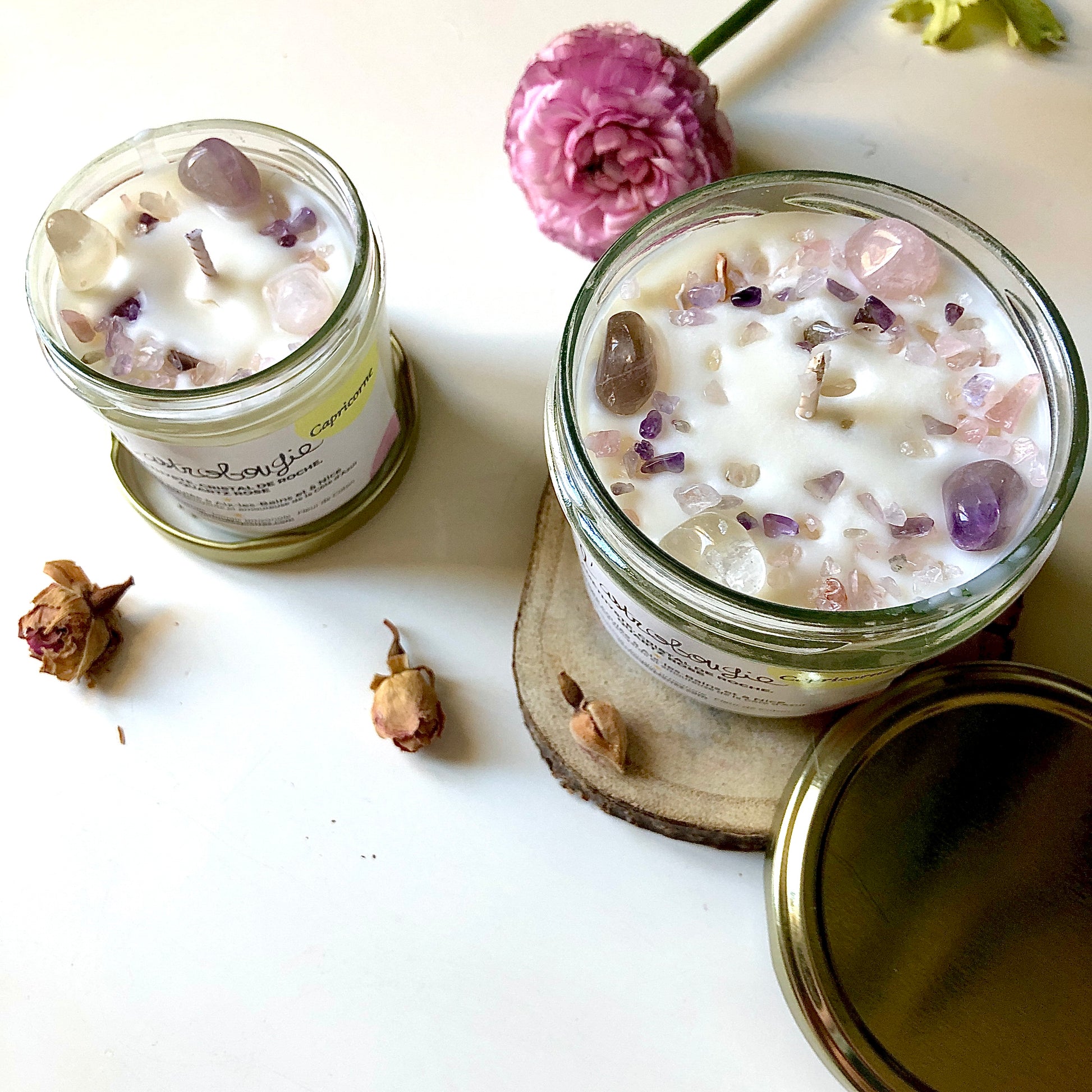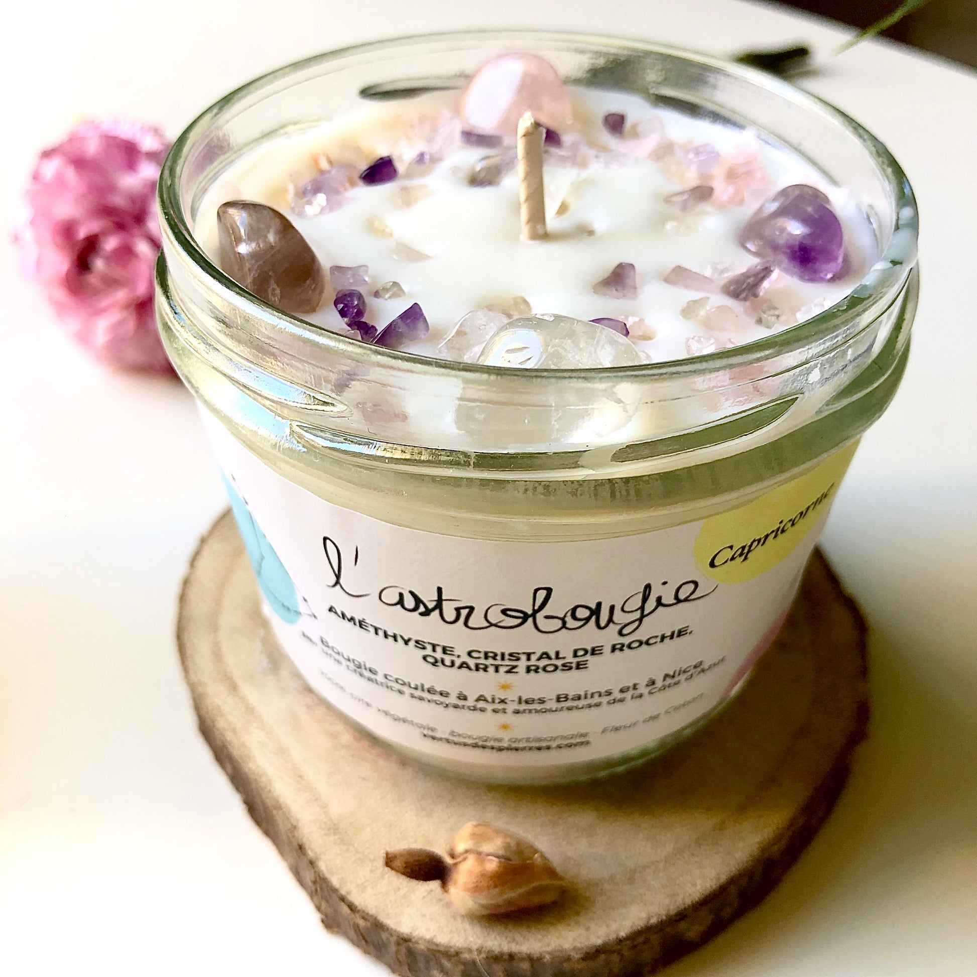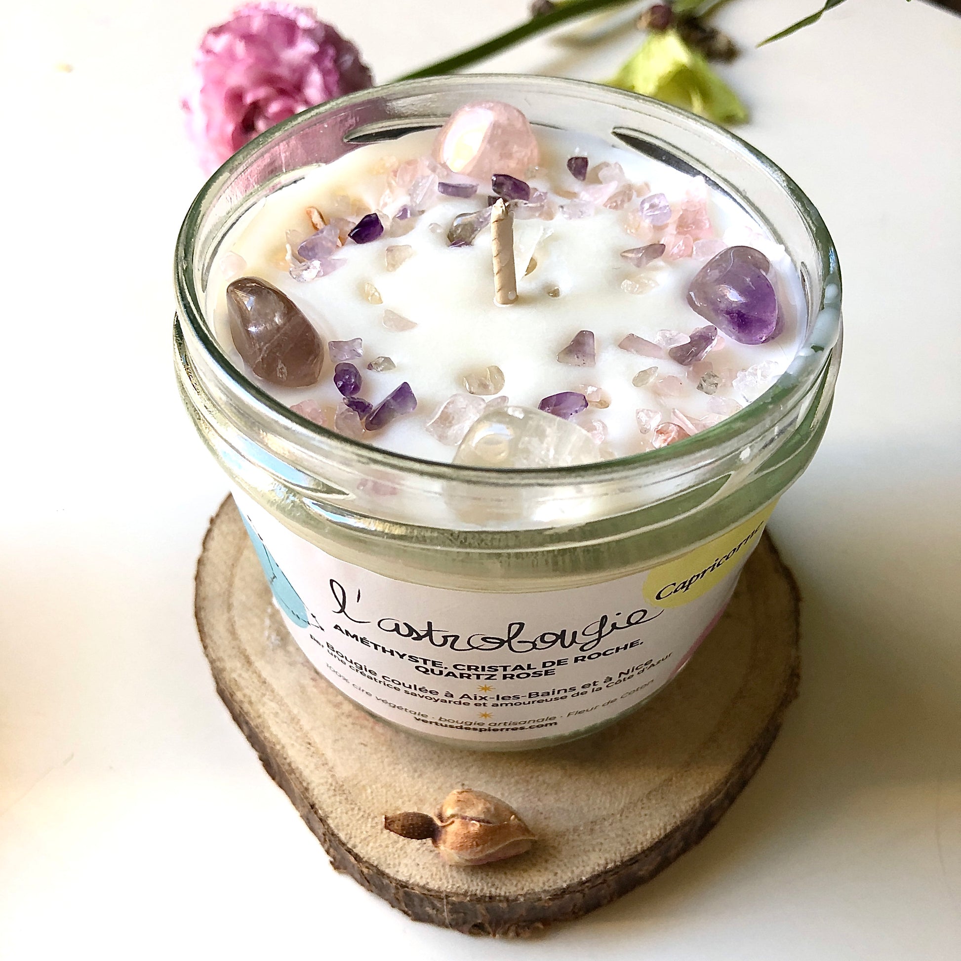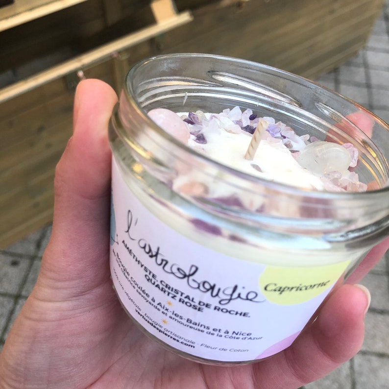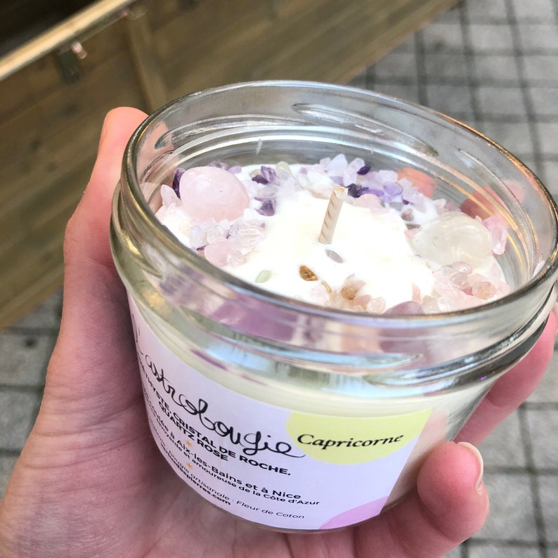 The Capricorn AstroCandle is a unique creation personalized to the earth sign of Capricorn. It contains carefully selected semi-precious stones, each carrying the specific energies associated with this sign.