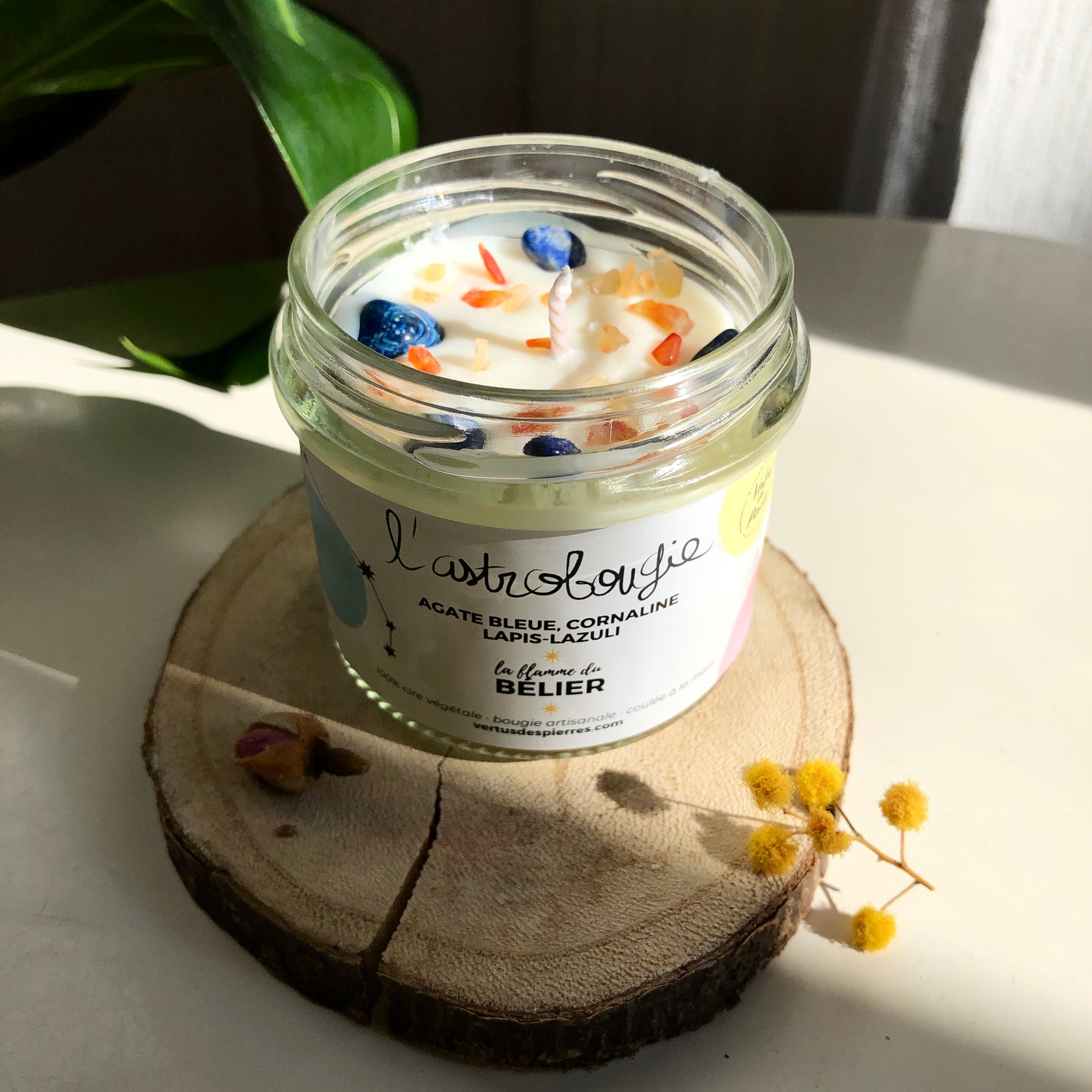 The Aries Astro Candle is a unique and personalized gift for this fire sign. It contains stones filled with virtues associated with Aries, which diffuse their benefits to this sign.