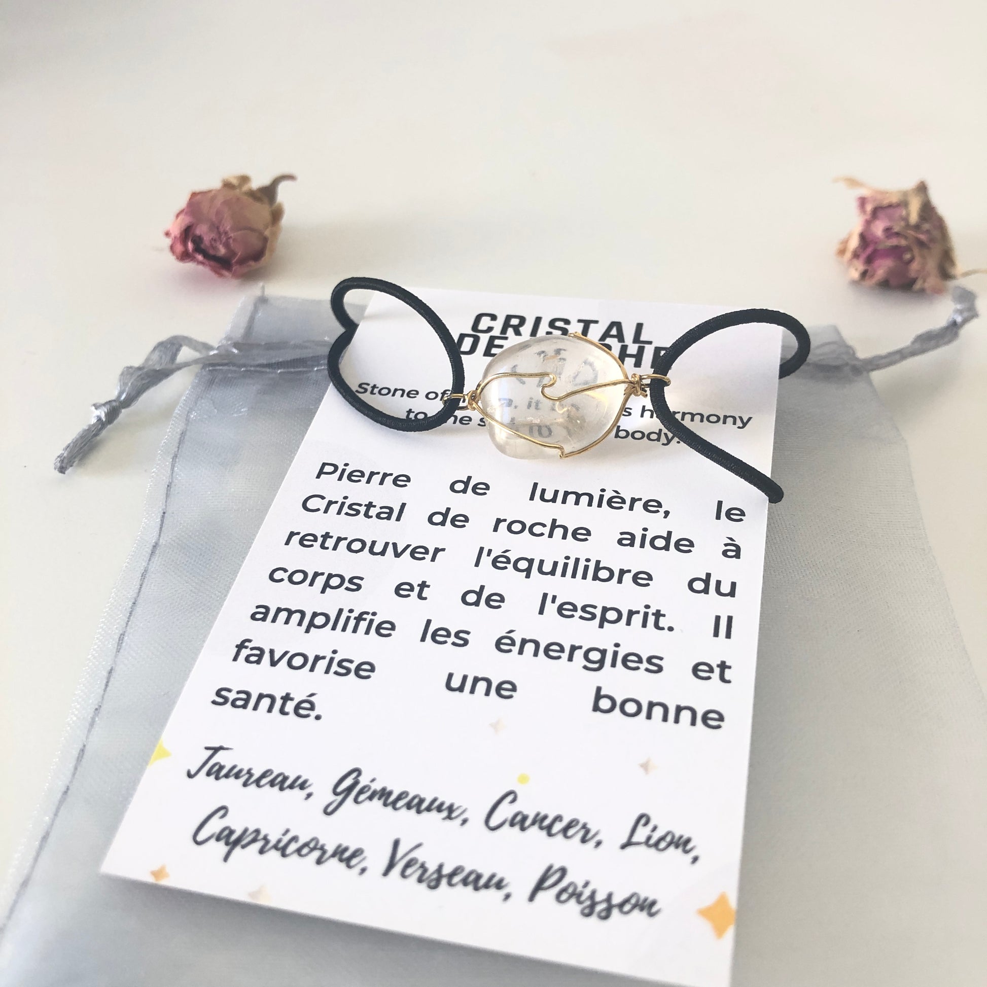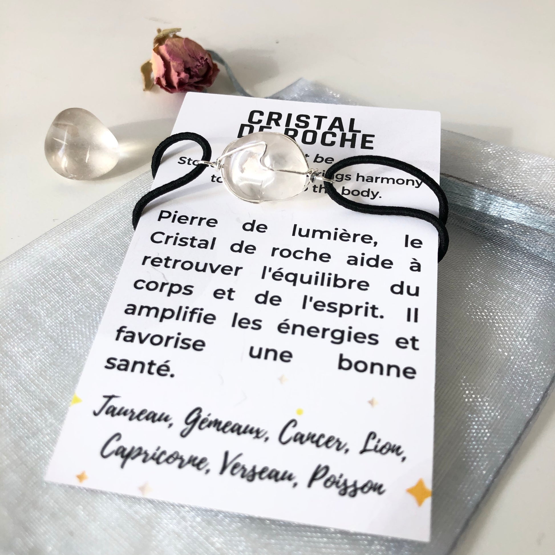 This Rock Crystal bracelet symbolizes the transformation and amplification of energies . It wards off evil and harmonizes the energy body . Stone of light , Rock Crystal, offers clairvoyance and wisdom .