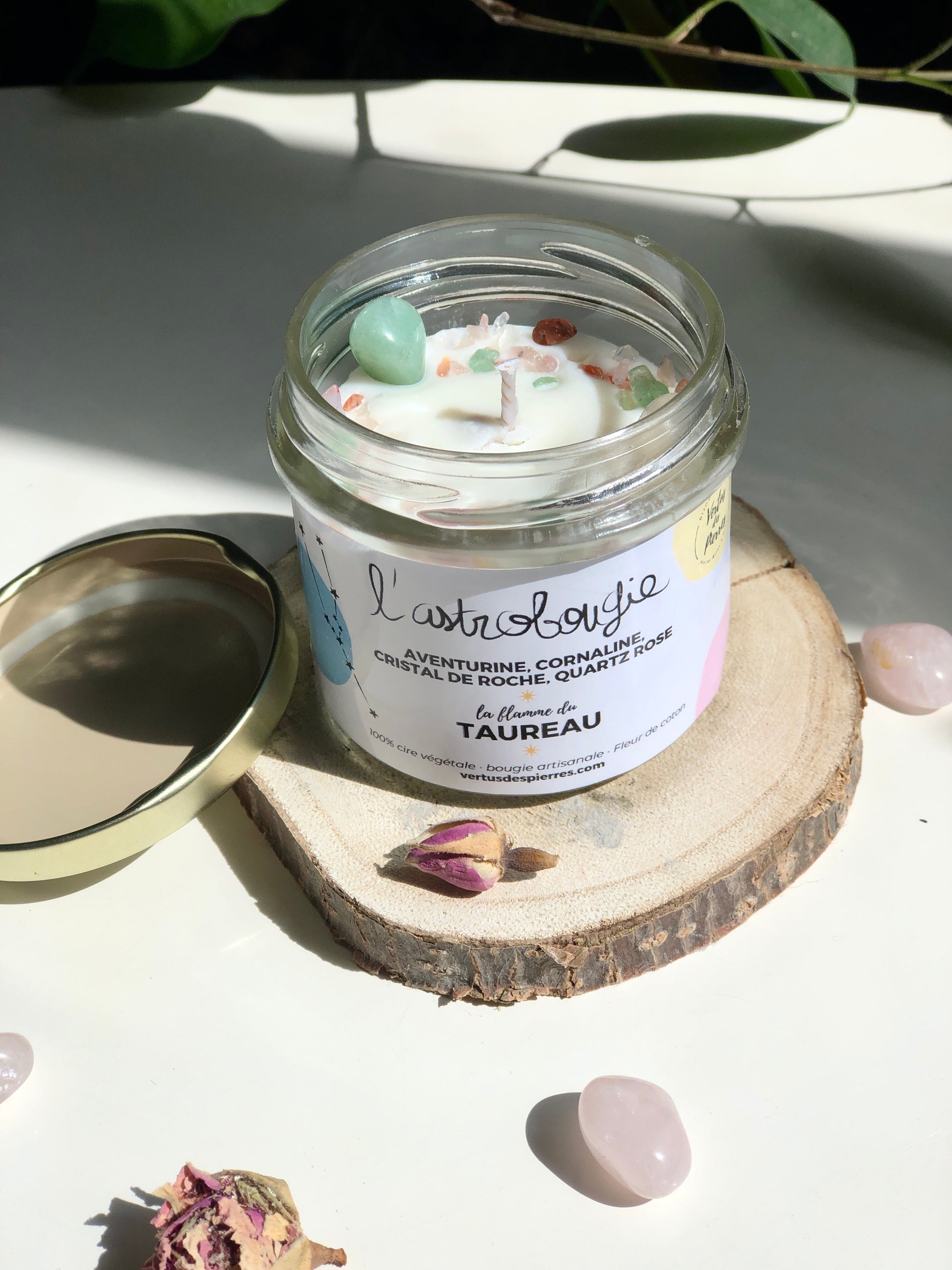 L’Astro bougie Taureau est un cadeau unique et personnalisé pour ce signe de Terre. Elle contient des pierres remplies de vertus associées au Taureau, qui diffusent leurs bienfaits à ce signe.