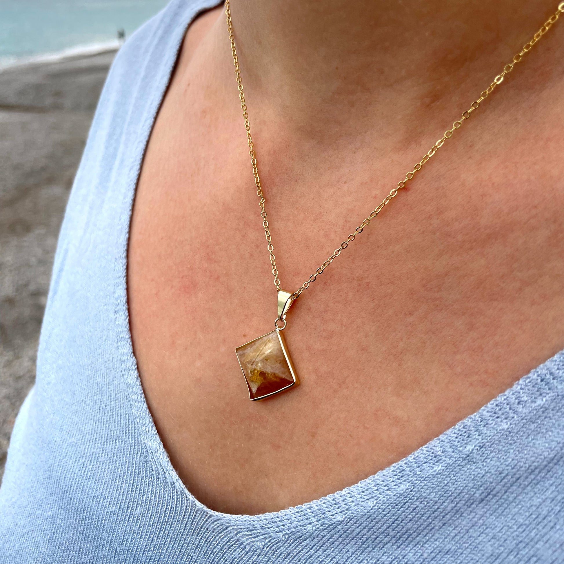 Ce pendentif en Citrine naturelle symbolise le succès et la bonne humeur. Il apporte du bonheur à la personne qui le possède. Pierre du soleil, la Citrine rayonne, vivifie l'esprit et renforce la créativité.