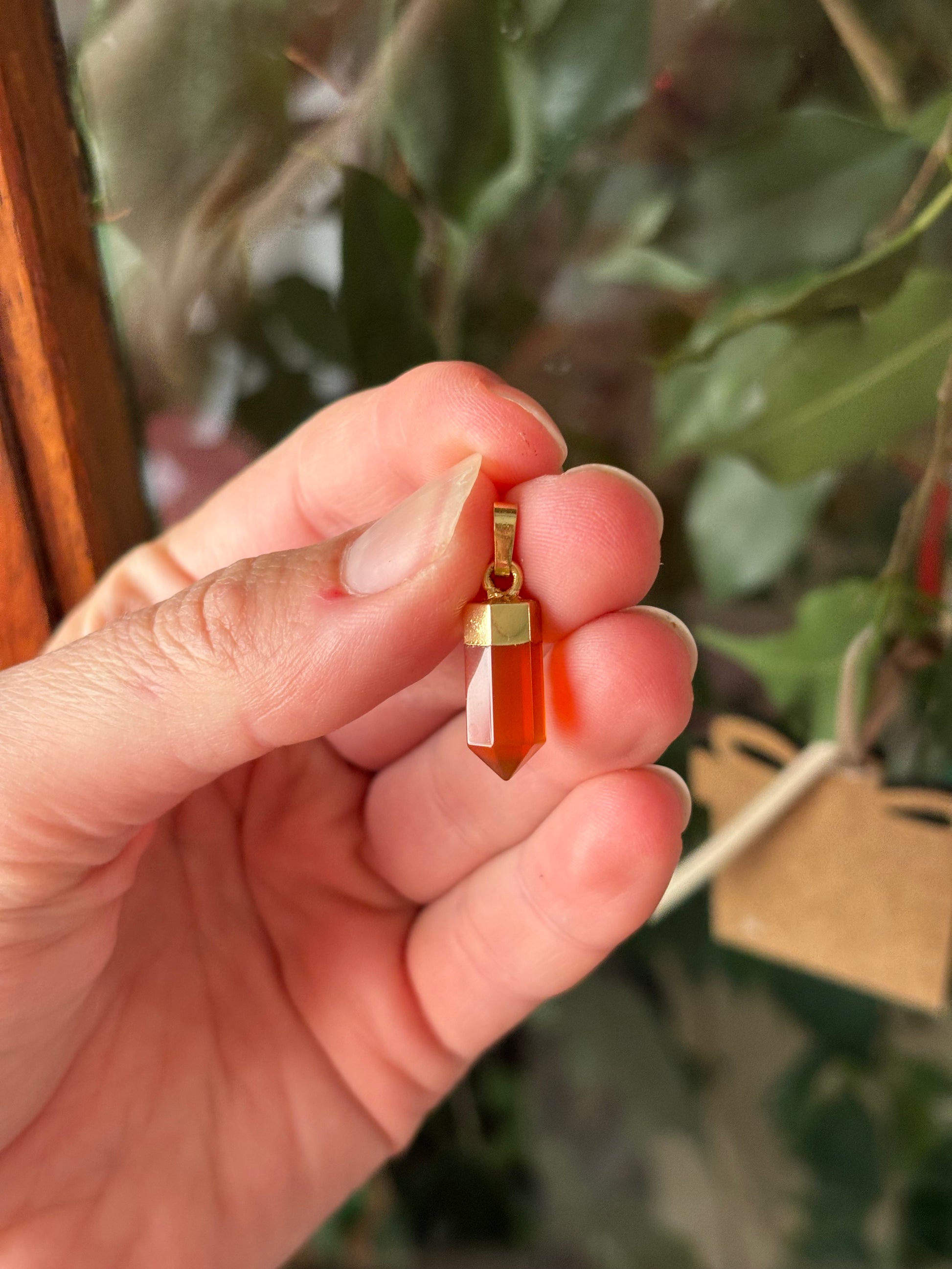 Pendentif Cornaline - pointe • doré ou argenté
